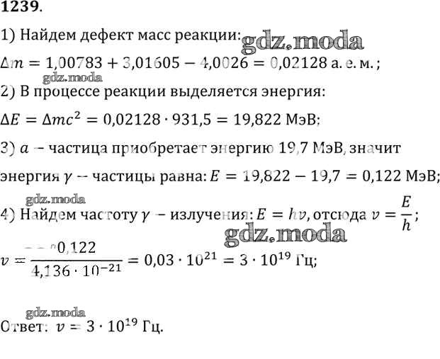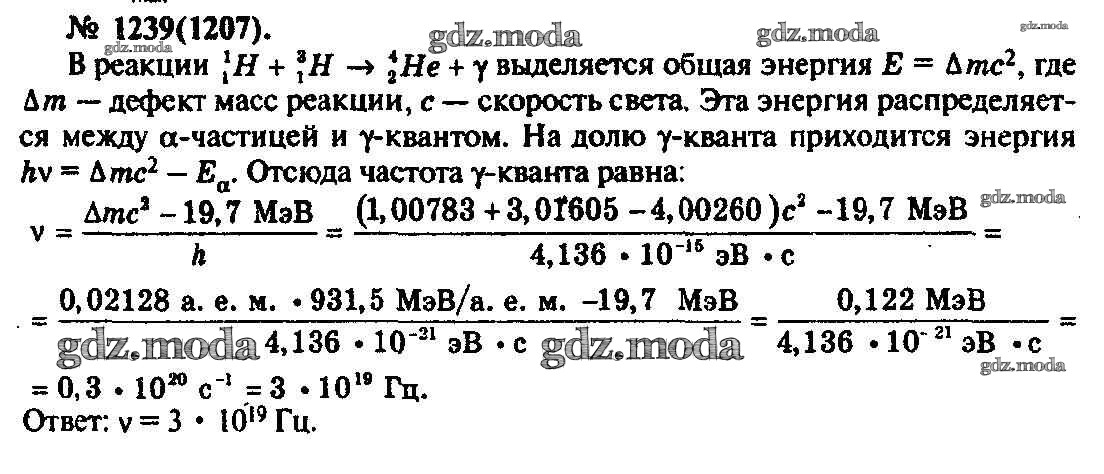 ОТВЕТ на задание № 1239 Задачник по Физике 10-11 класс Рымкевич УМК