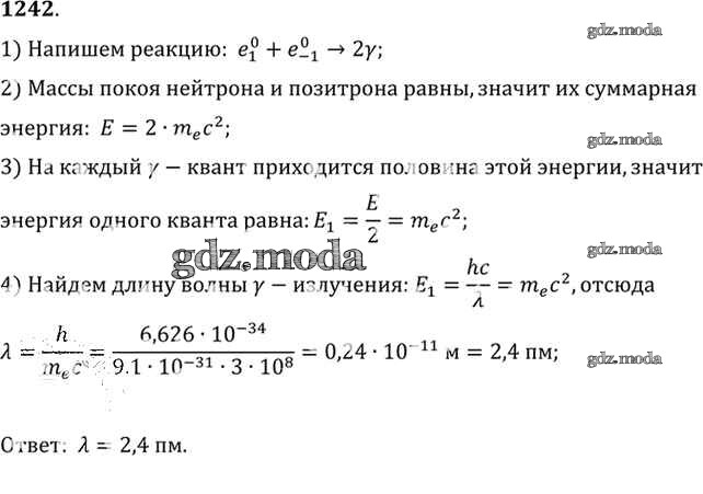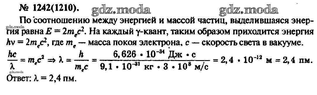 ОТВЕТ на задание № 1242 Задачник по Физике 10-11 класс Рымкевич УМК