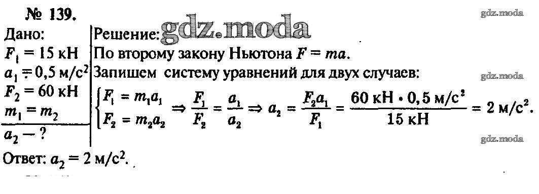 ОТВЕТ на задание № 139 Задачник по Физике 10-11 класс Рымкевич УМК