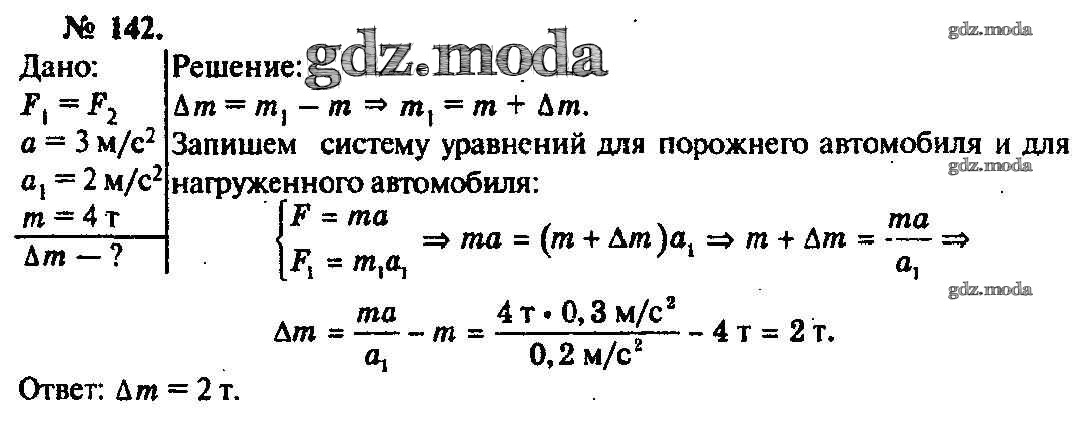 ОТВЕТ на задание № 142 Задачник по Физике 10-11 класс Рымкевич УМК
