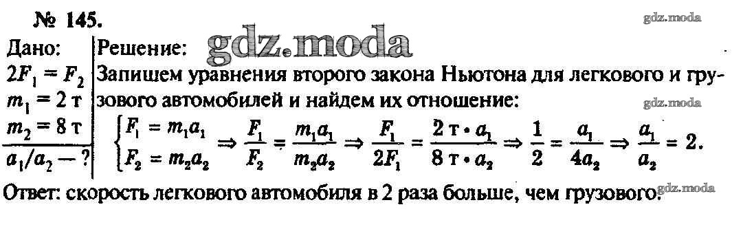 ОТВЕТ на задание № 145 Задачник по Физике 10-11 класс Рымкевич УМК