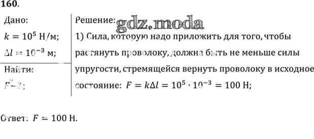 ОТВЕТ на задание № 160 Задачник по Физике 10-11 класс Рымкевич УМК