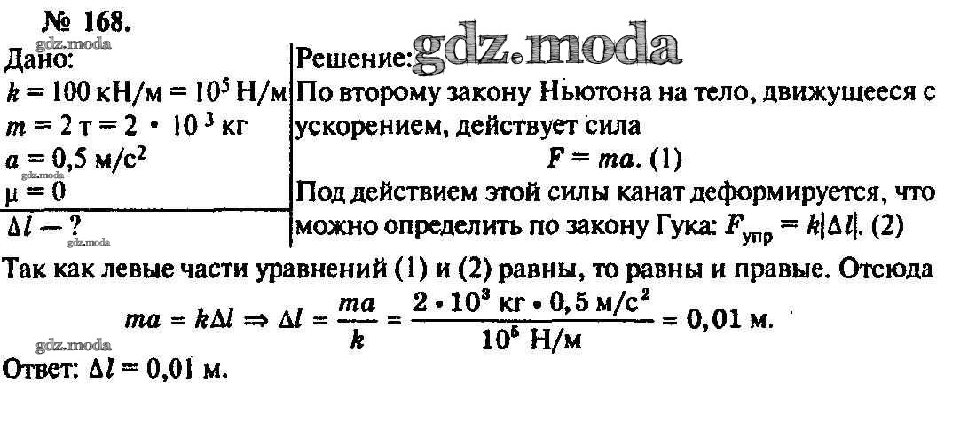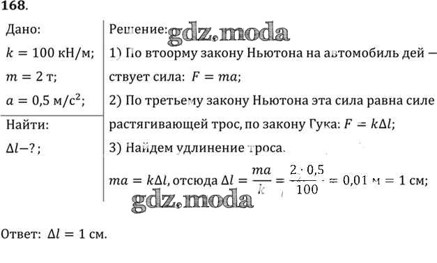 ОТВЕТ на задание № 168 Задачник по Физике 10-11 класс Рымкевич УМК