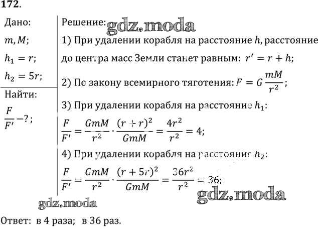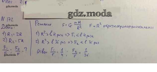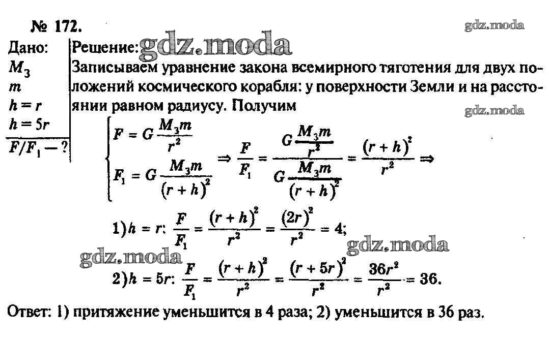 ОТВЕТ на задание № 172 Задачник по Физике 10-11 класс Рымкевич УМК
