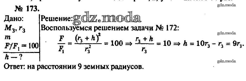 ОТВЕТ на задание № 173 Задачник по Физике 10-11 класс Рымкевич УМК