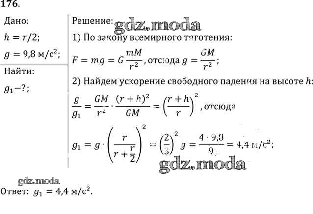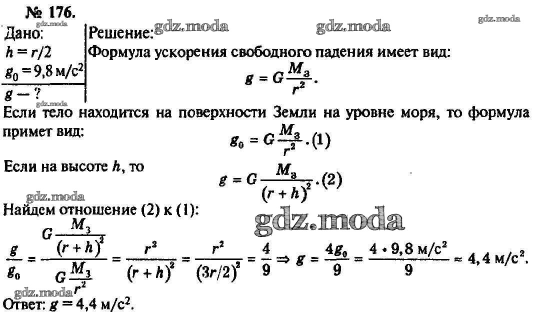 ОТВЕТ на задание № 176 Задачник по Физике 10-11 класс Рымкевич УМК