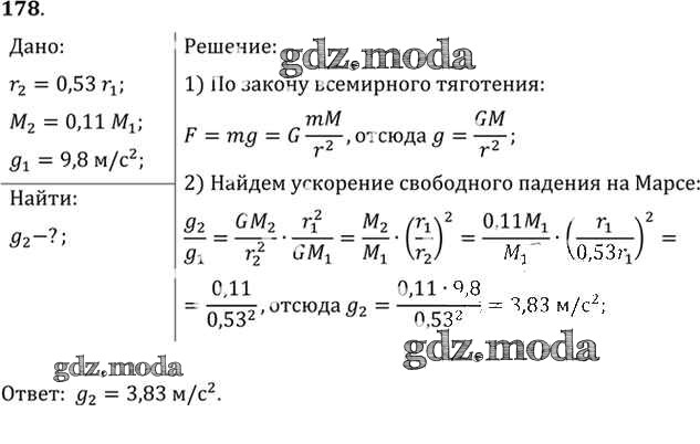ОТВЕТ на задание № 178 Задачник по Физике 10-11 класс Рымкевич УМК