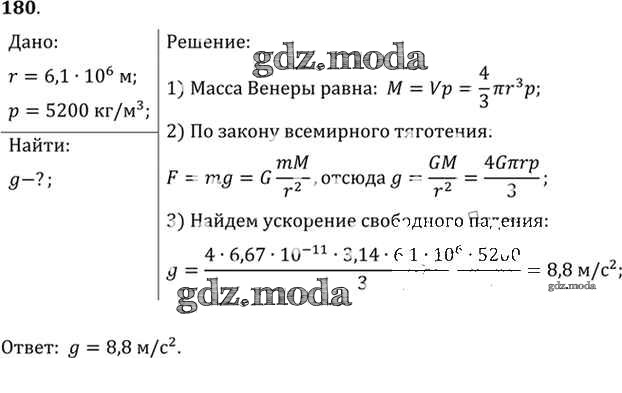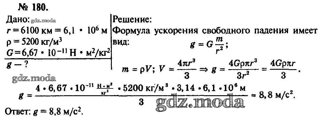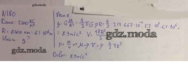 ОТВЕТ на задание № 180 Задачник по Физике 10-11 класс Рымкевич УМК