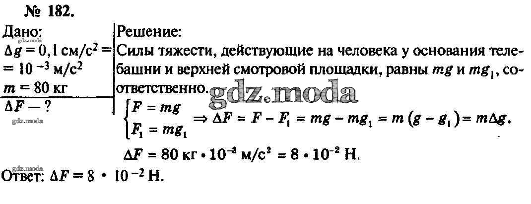ОТВЕТ на задание № 182 Задачник по Физике 10-11 класс Рымкевич УМК