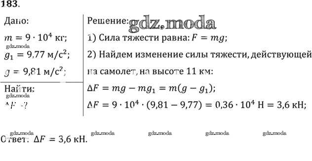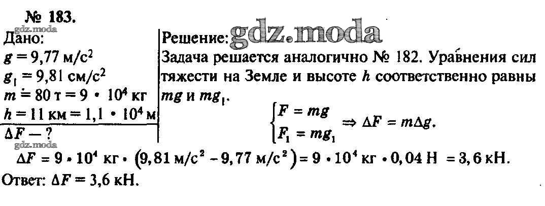 ОТВЕТ на задание № 183 Задачник по Физике 10-11 класс Рымкевич УМК