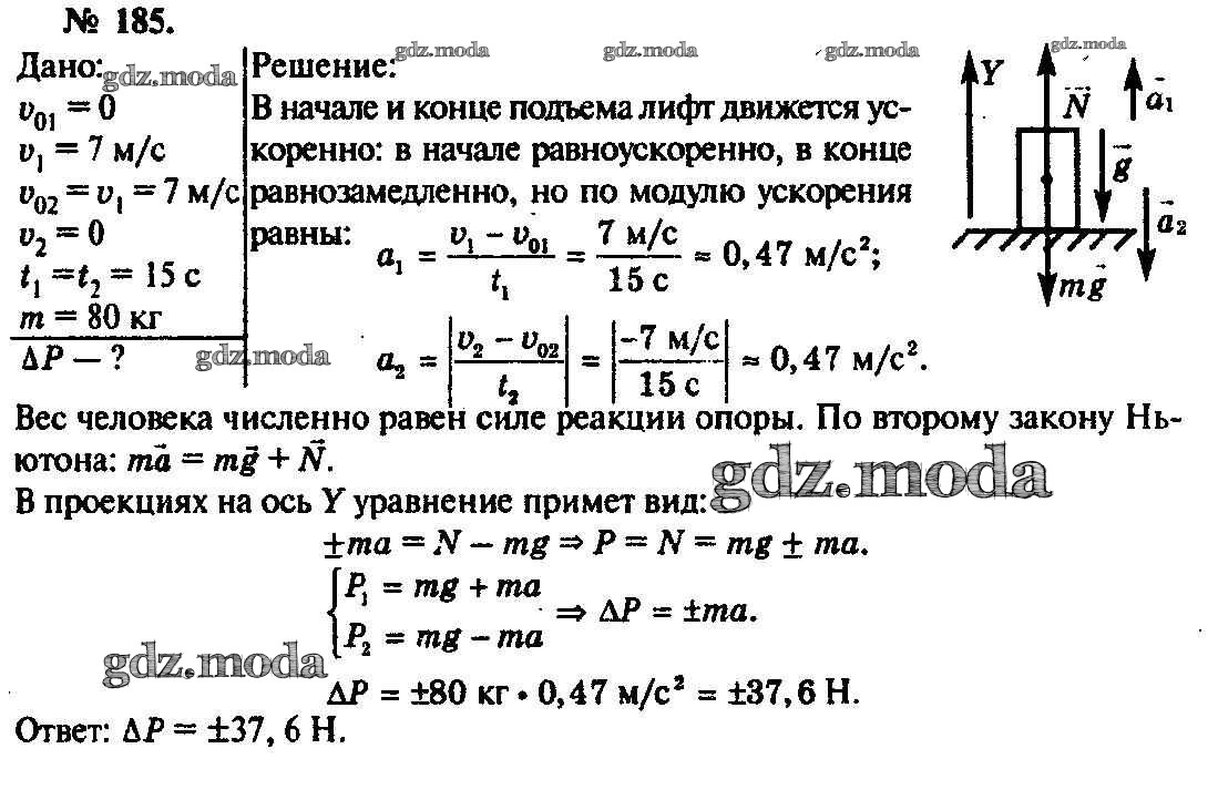 ОТВЕТ на задание № 185 Задачник по Физике 10-11 класс Рымкевич УМК