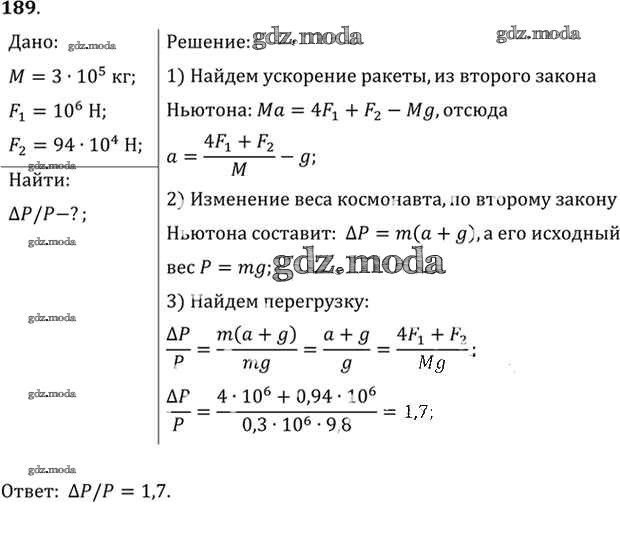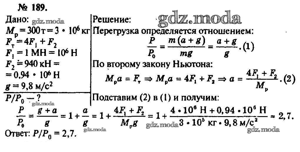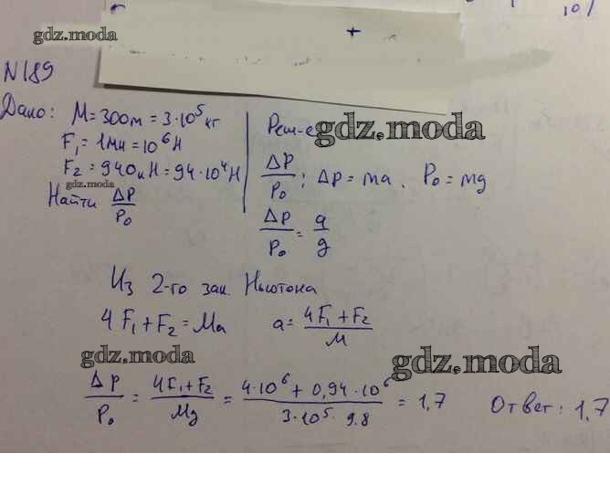 ОТВЕТ на задание № 189 Задачник по Физике 10-11 класс Рымкевич УМК