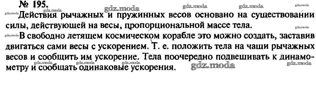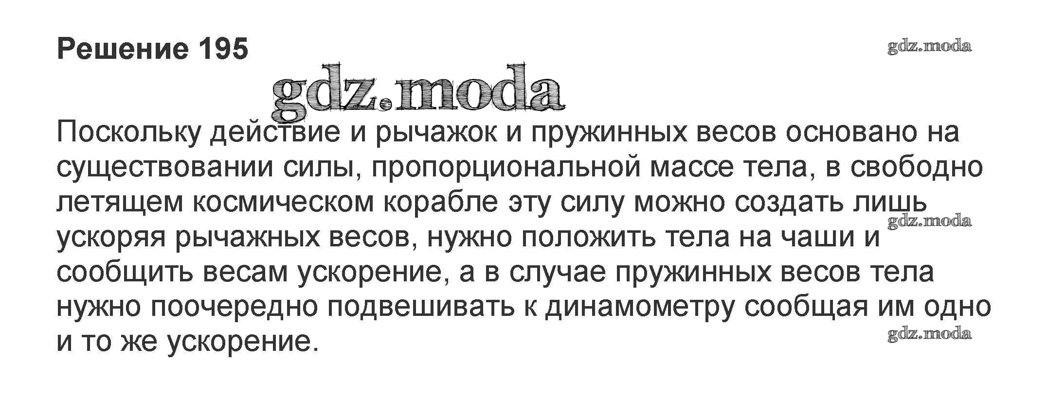 ОТВЕТ на задание № 195 Задачник по Физике 10-11 класс Рымкевич УМК