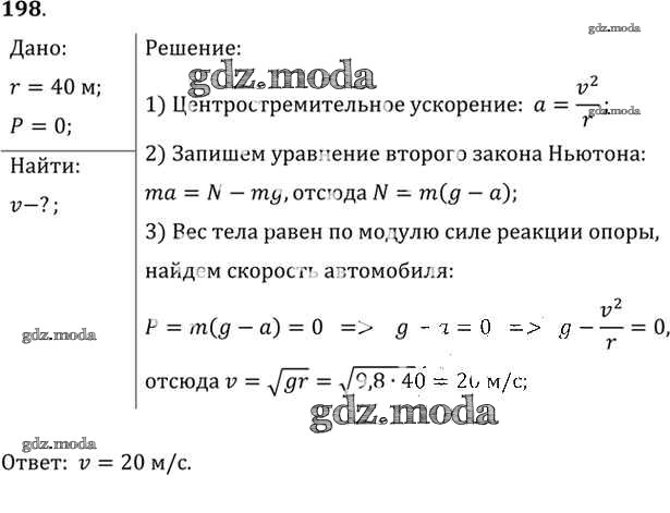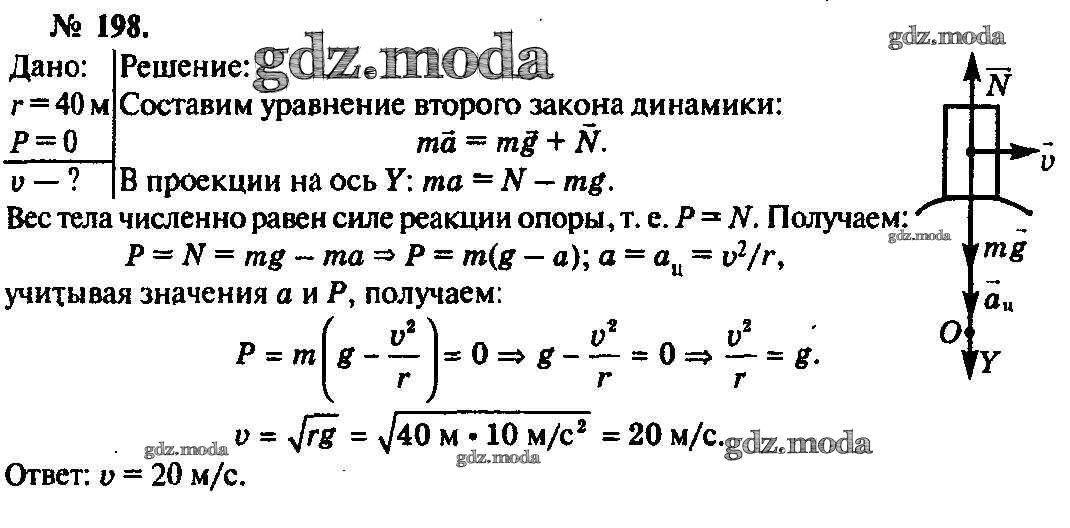 ОТВЕТ на задание № 198 Задачник по Физике 10-11 класс Рымкевич УМК