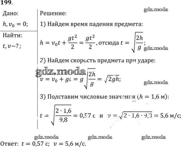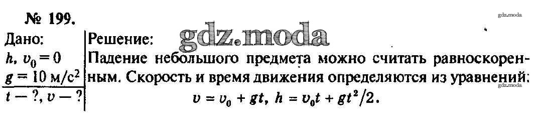 ОТВЕТ на задание № 199 Задачник по Физике 10-11 класс Рымкевич УМК