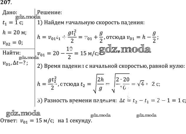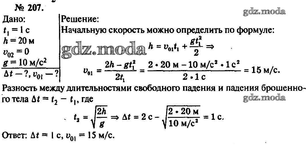 ОТВЕТ на задание № 207 Задачник по Физике 10-11 класс Рымкевич УМК