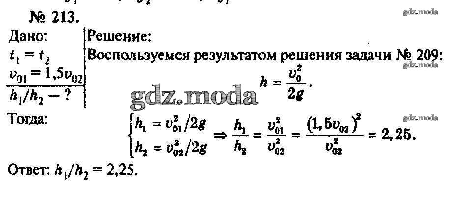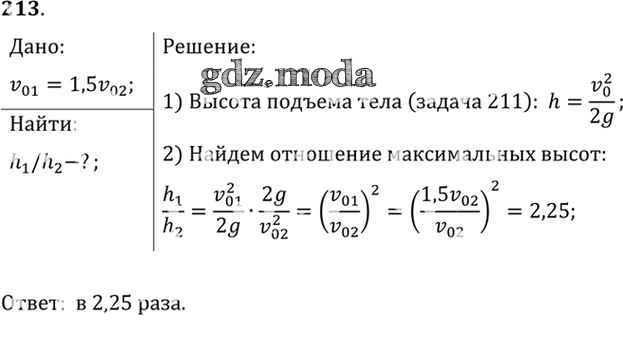 ОТВЕТ на задание № 213 Задачник по Физике 10-11 класс Рымкевич УМК