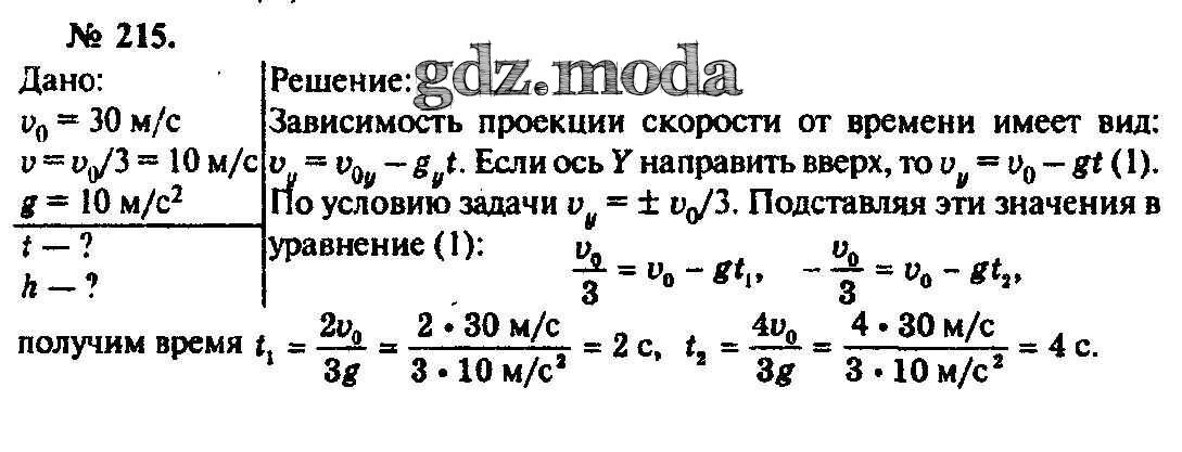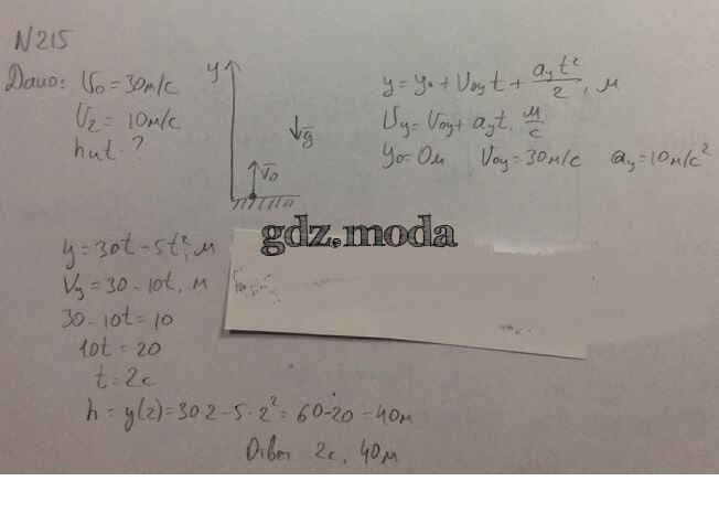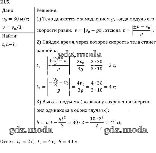 ОТВЕТ на задание № 215 Задачник по Физике 10-11 класс Рымкевич УМК