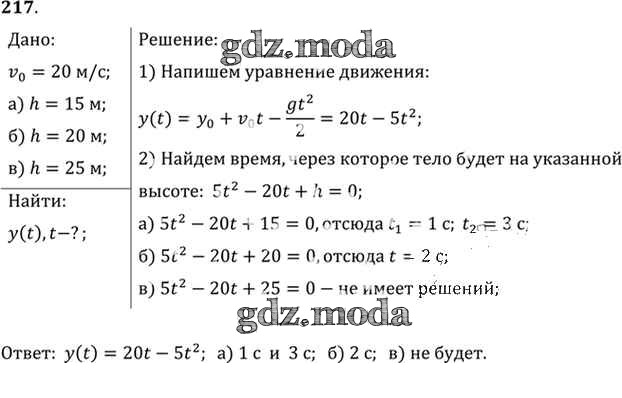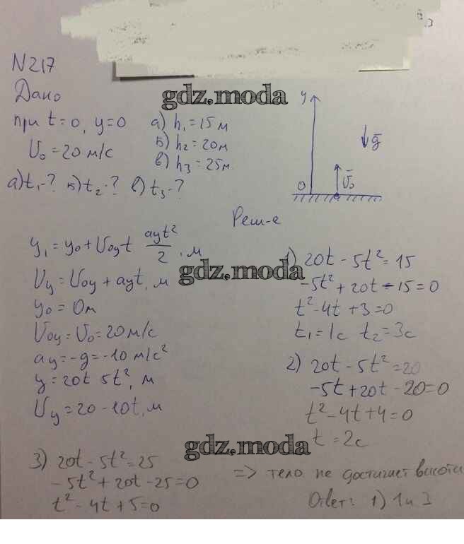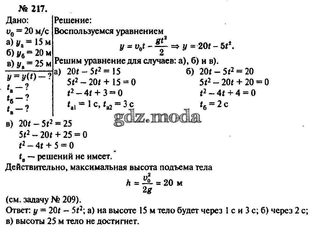 ОТВЕТ на задание № 217 Задачник по Физике 10-11 класс Рымкевич УМК