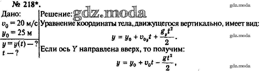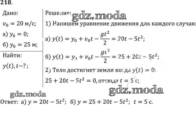 ОТВЕТ на задание № 218 Задачник по Физике 10-11 класс Рымкевич УМК
