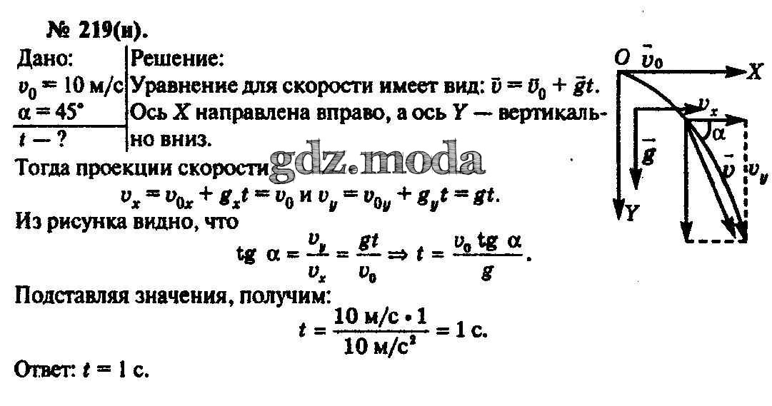 ОТВЕТ на задание № 219 Задачник по Физике 10-11 класс Рымкевич УМК