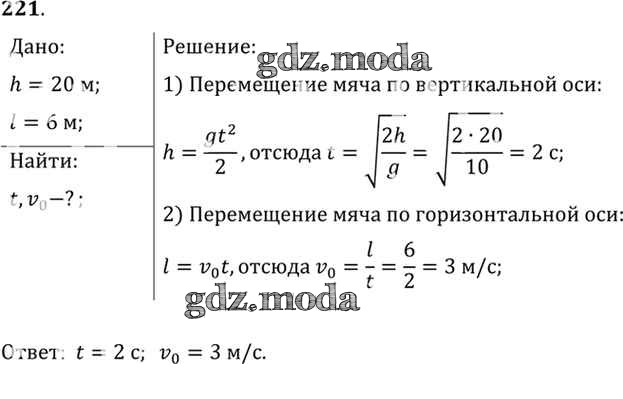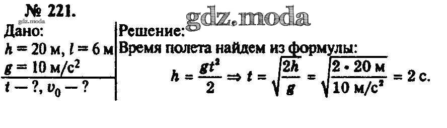 ОТВЕТ на задание № 221 Задачник по Физике 10-11 класс Рымкевич УМК