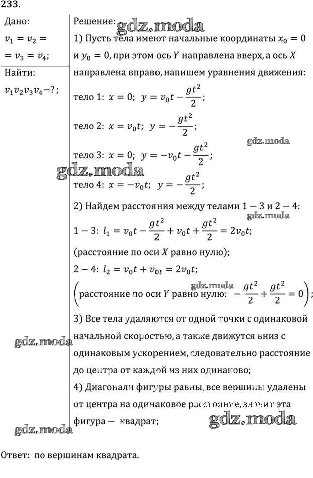 ОТВЕТ на задание № 233 Задачник по Физике 10-11 класс Рымкевич УМК