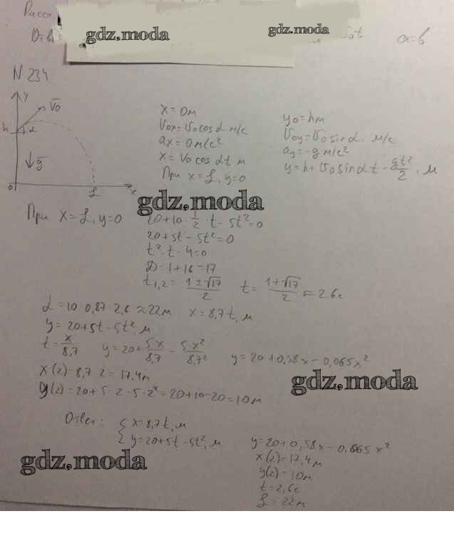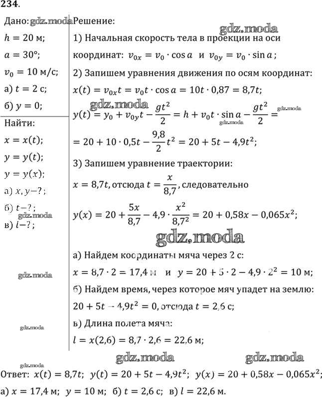 ОТВЕТ на задание № 234 Задачник по Физике 10-11 класс Рымкевич УМК