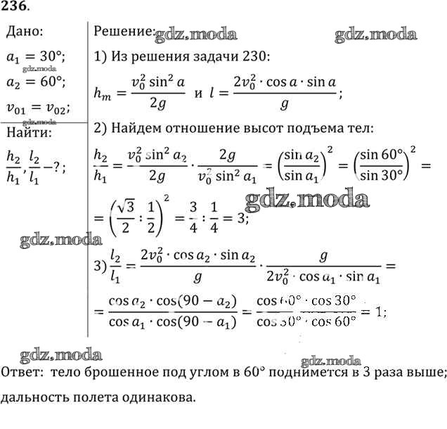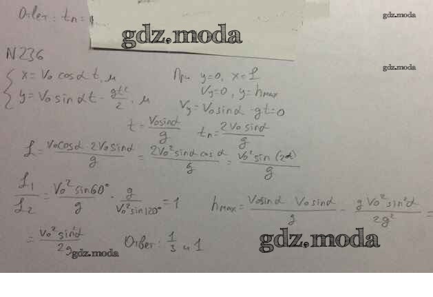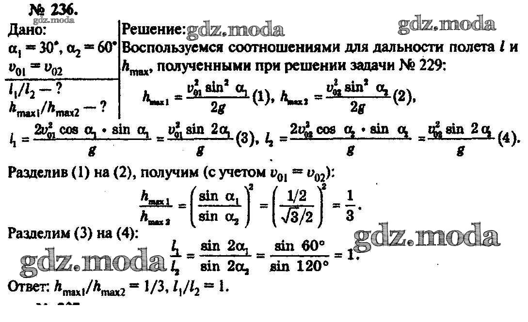 ОТВЕТ на задание № 236 Задачник по Физике 10-11 класс Рымкевич УМК