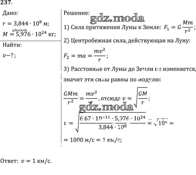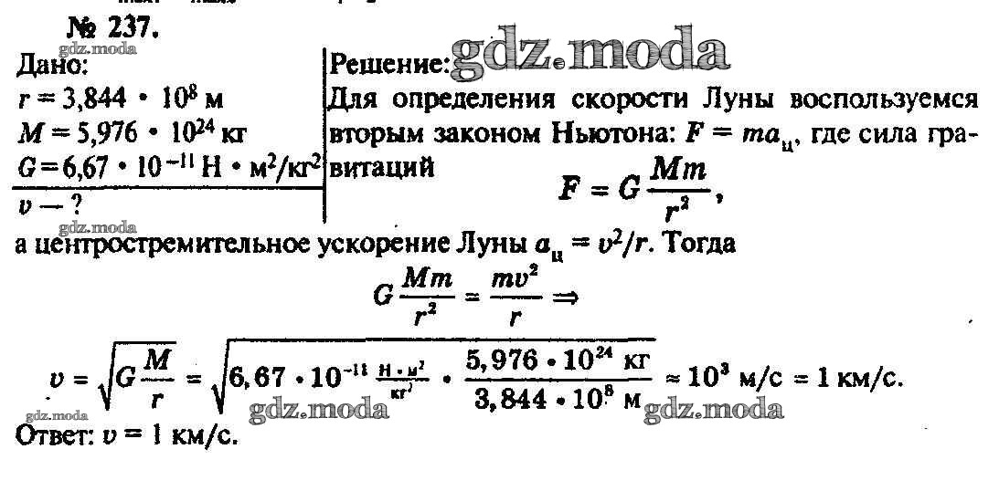 ОТВЕТ на задание № 237 Задачник по Физике 10-11 класс Рымкевич УМК