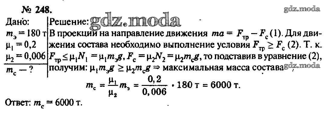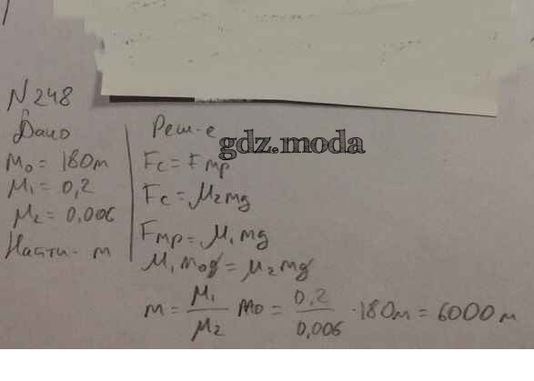 ОТВЕТ на задание № 248 Задачник по Физике 10-11 класс Рымкевич УМК
