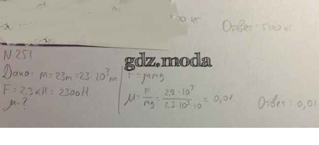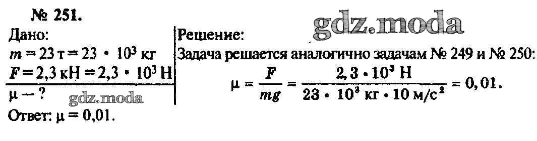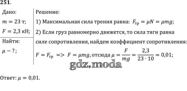 ОТВЕТ на задание № 251 Задачник по Физике 10-11 класс Рымкевич УМК