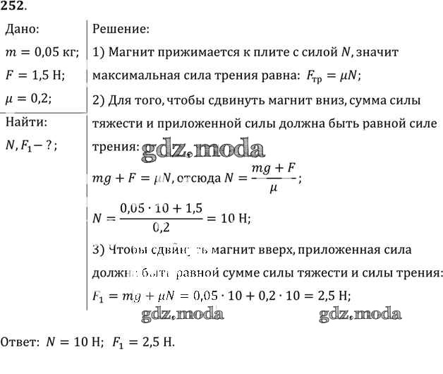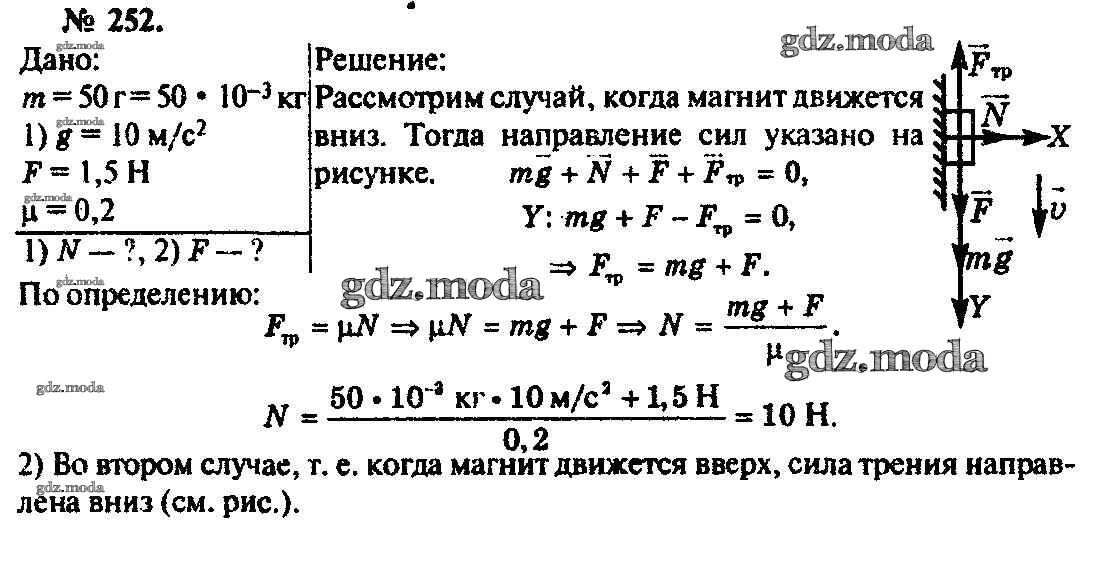 ОТВЕТ на задание № 252 Задачник по Физике 10-11 класс Рымкевич УМК