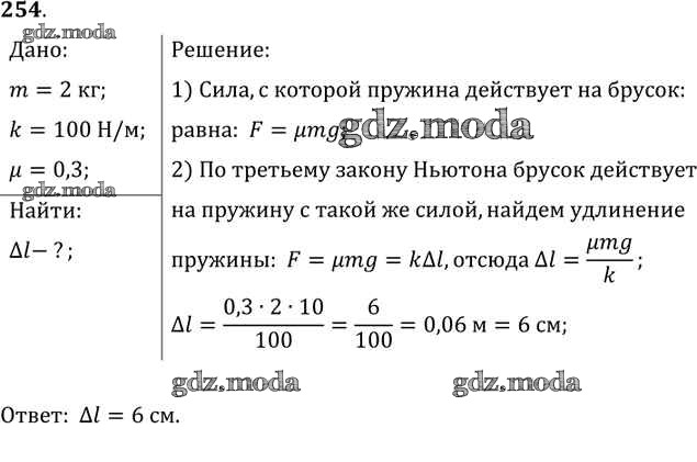 ОТВЕТ на задание № 254 Задачник по Физике 10-11 класс Рымкевич УМК