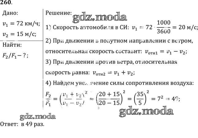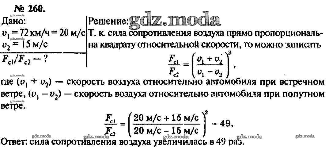 ОТВЕТ на задание № 260 Задачник по Физике 10-11 класс Рымкевич УМК