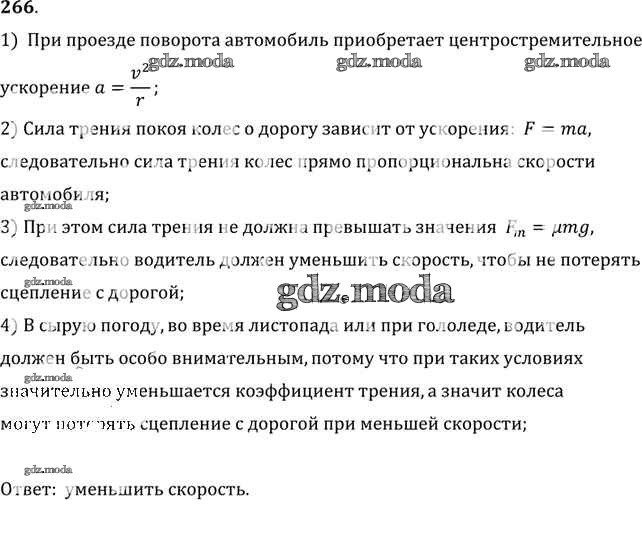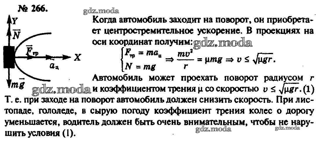ОТВЕТ на задание № 266 Задачник по Физике 10-11 класс Рымкевич УМК