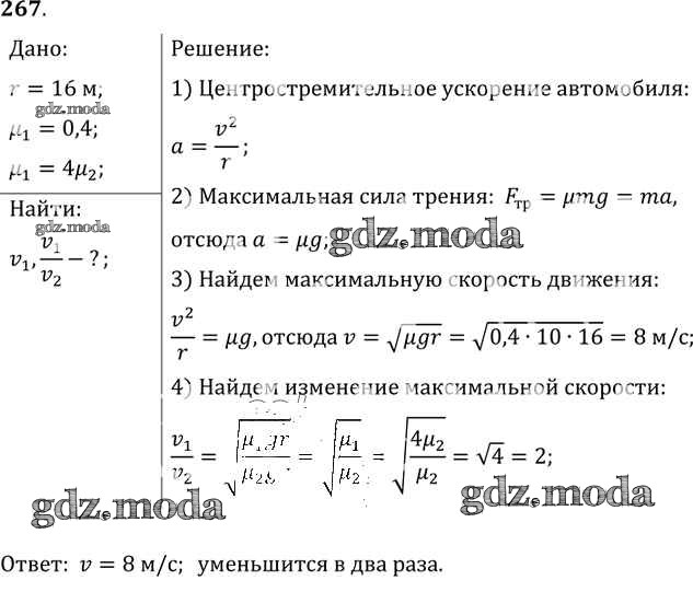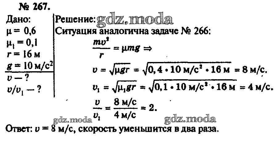 ОТВЕТ на задание № 267 Задачник по Физике 10-11 класс Рымкевич УМК