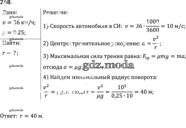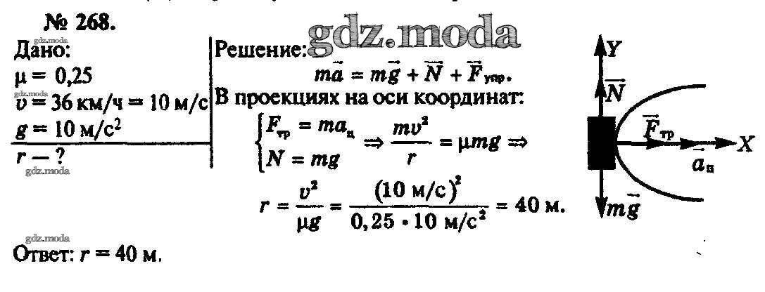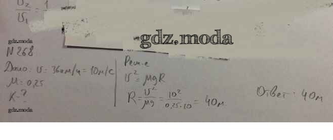 ОТВЕТ на задание № 268 Задачник по Физике 10-11 класс Рымкевич УМК