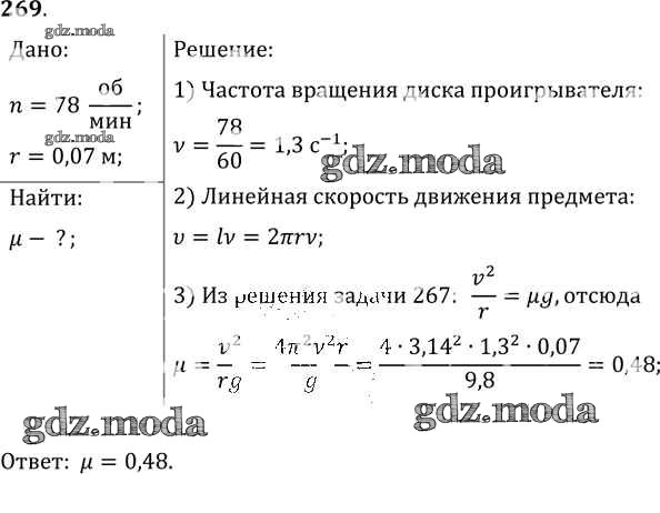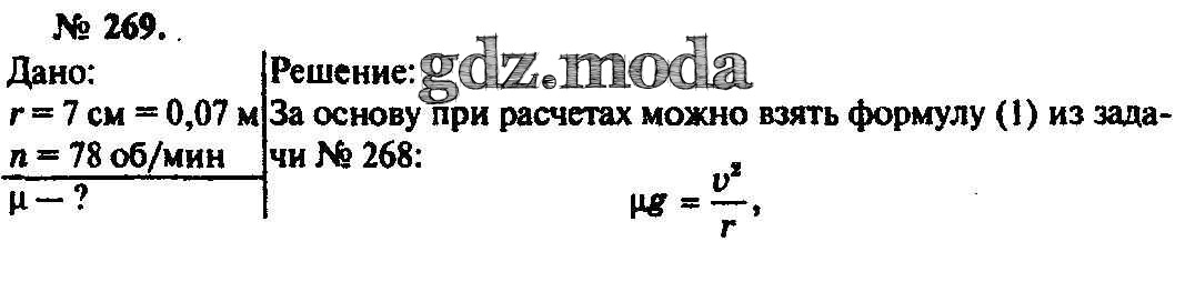 ОТВЕТ на задание № 269 Задачник по Физике 10-11 класс Рымкевич УМК