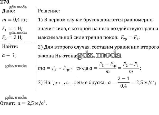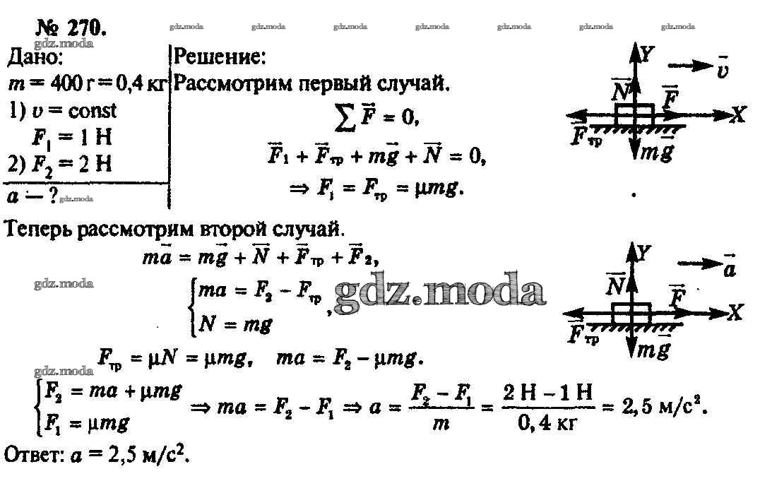 ОТВЕТ на задание № 270 Задачник по Физике 10-11 класс Рымкевич УМК