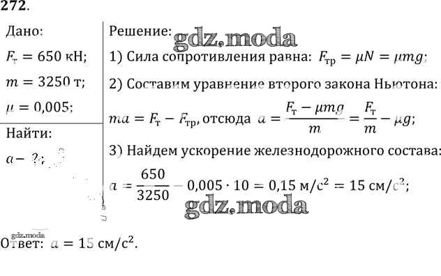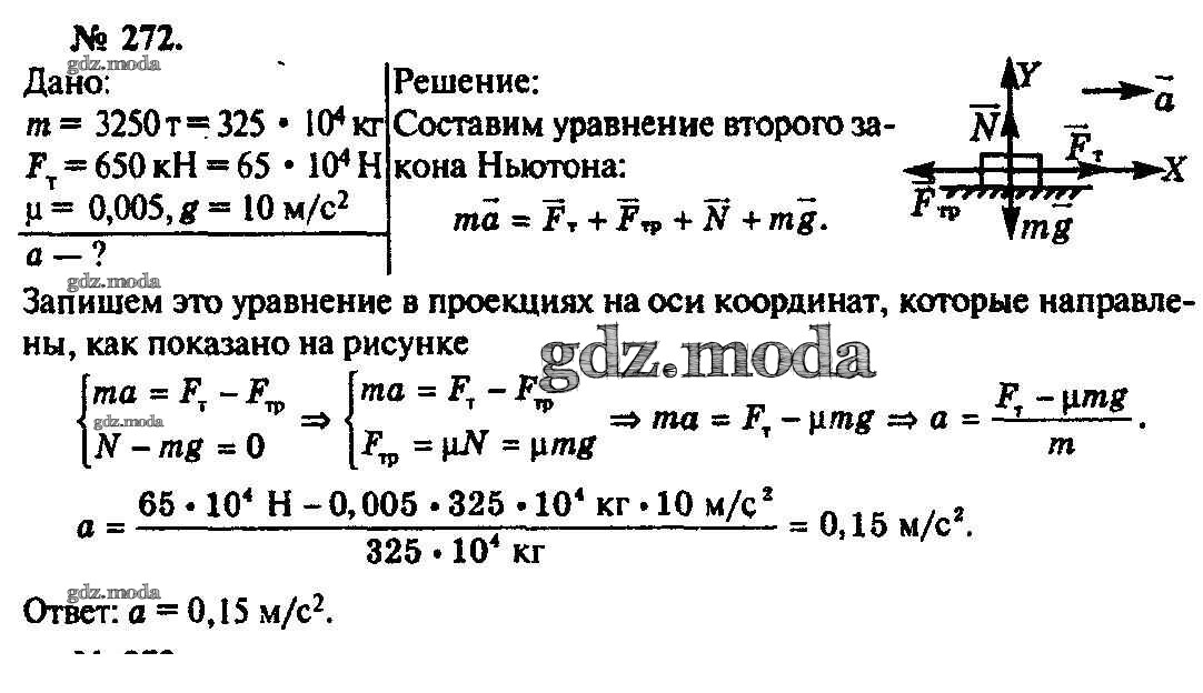 ОТВЕТ на задание № 272 Задачник по Физике 10-11 класс Рымкевич УМК