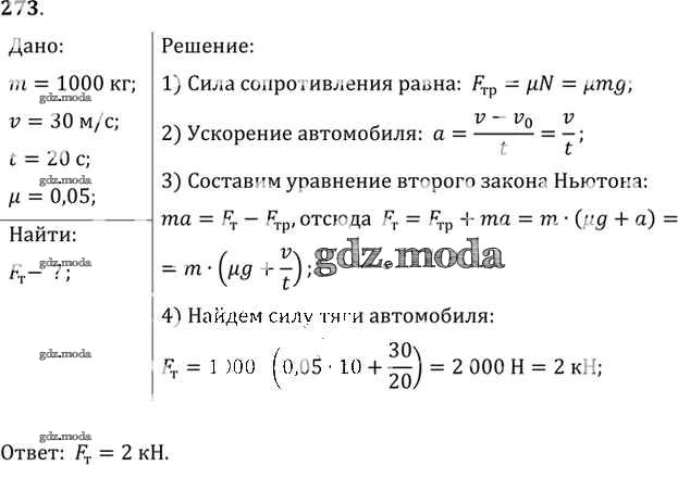ОТВЕТ на задание № 273 Задачник по Физике 10-11 класс Рымкевич УМК