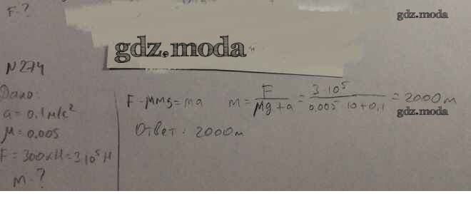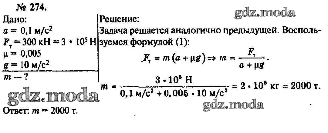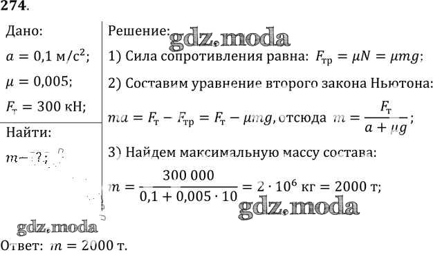 ОТВЕТ на задание № 274 Задачник по Физике 10-11 класс Рымкевич УМК