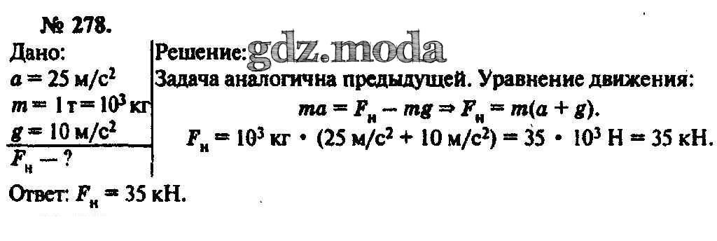 ОТВЕТ на задание № 278 Задачник по Физике 10-11 класс Рымкевич УМК