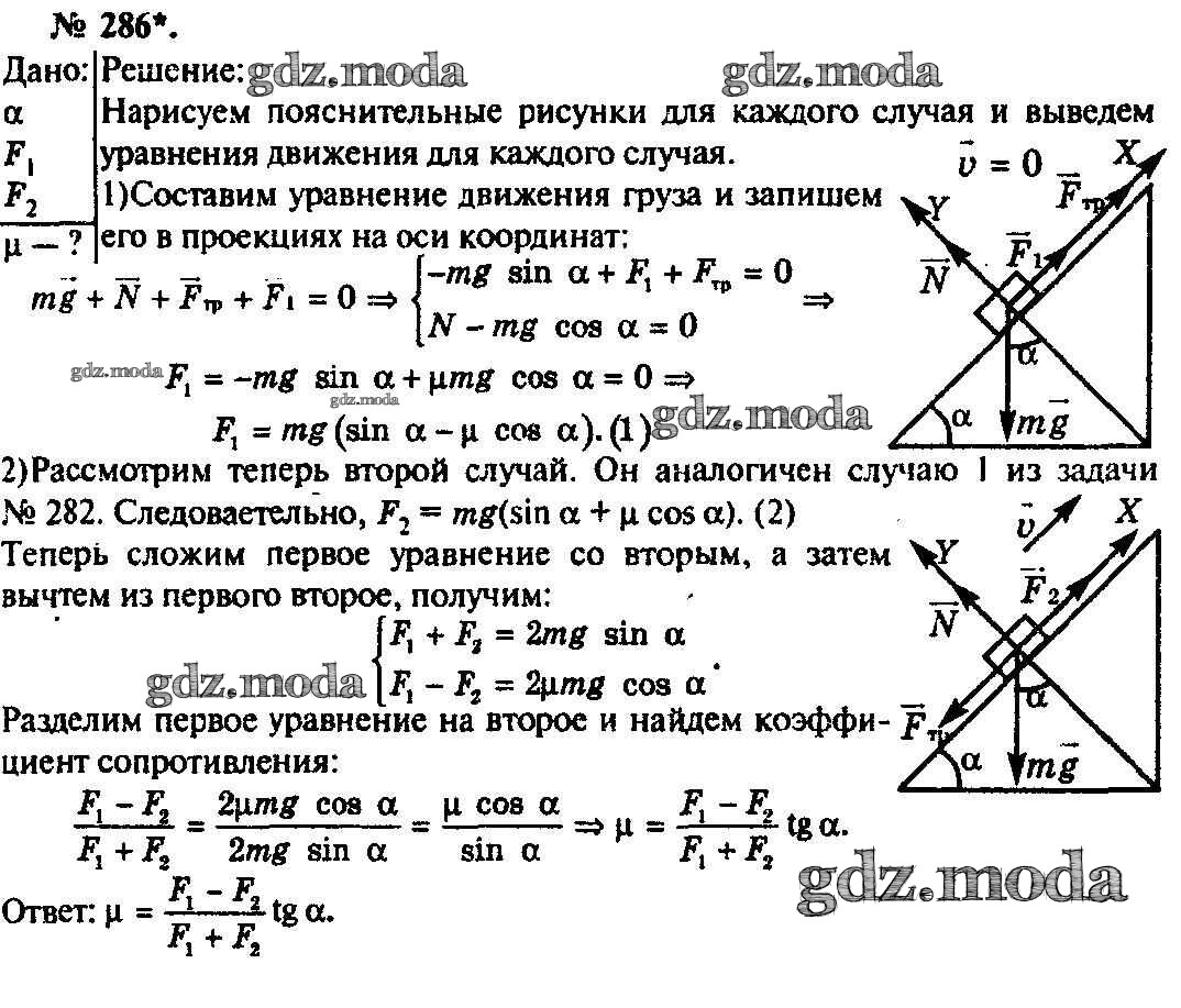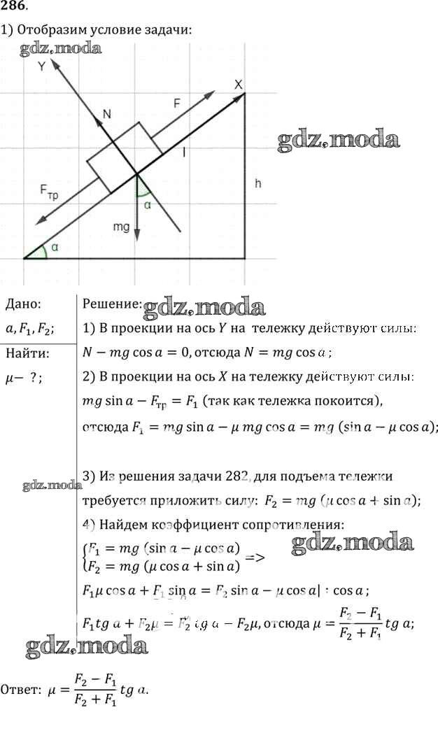 ОТВЕТ на задание № 286 Задачник по Физике 10-11 класс Рымкевич УМК