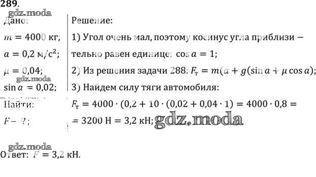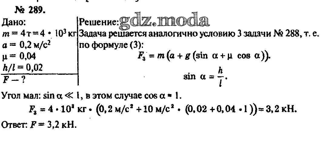 ОТВЕТ на задание № 289 Задачник по Физике 10-11 класс Рымкевич УМК