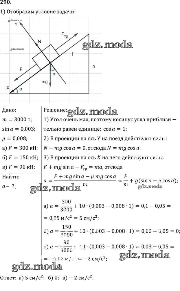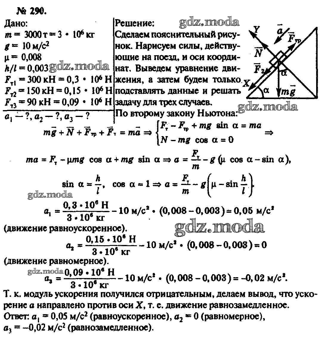 ОТВЕТ на задание № 290 Задачник по Физике 10-11 класс Рымкевич УМК