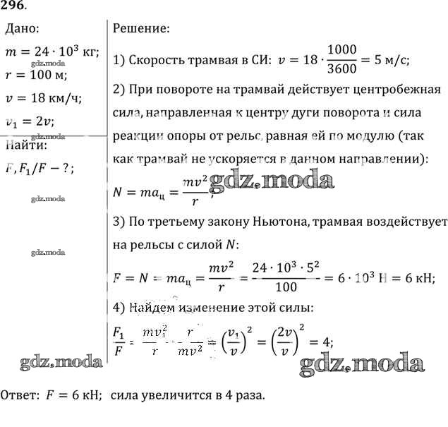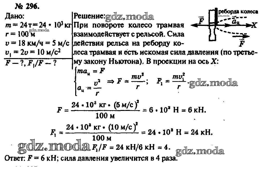 ОТВЕТ на задание № 296 Задачник по Физике 10-11 класс Рымкевич УМК