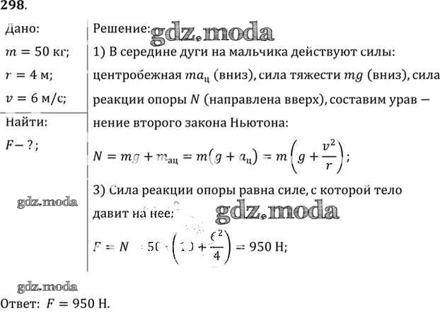 ОТВЕТ на задание № 298 Задачник по Физике 10-11 класс Рымкевич УМК