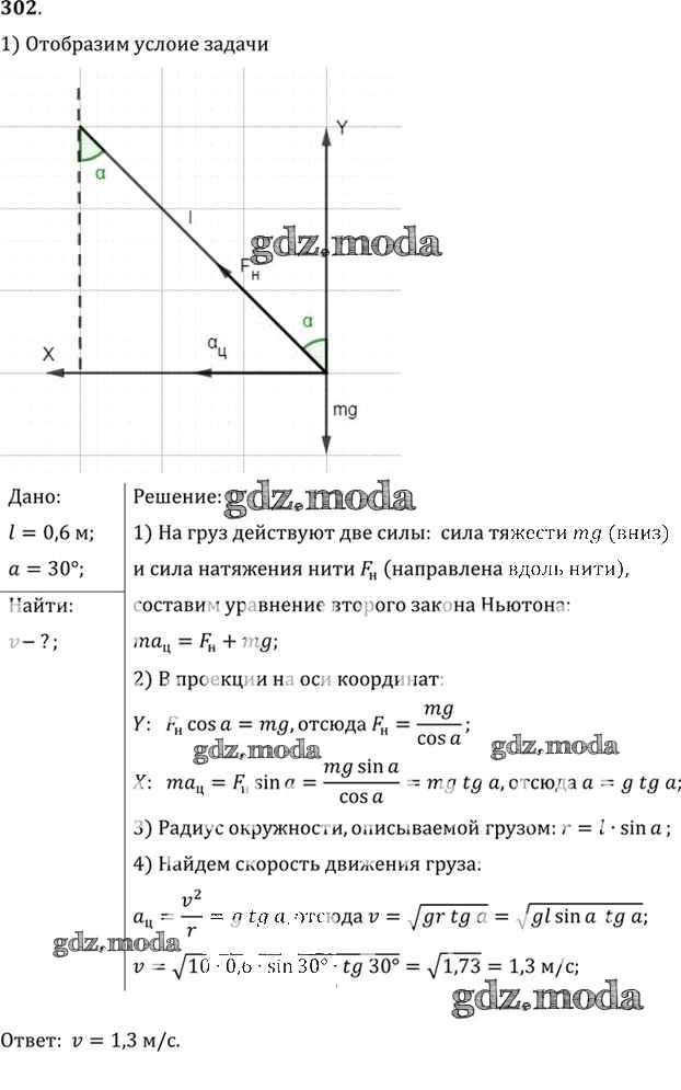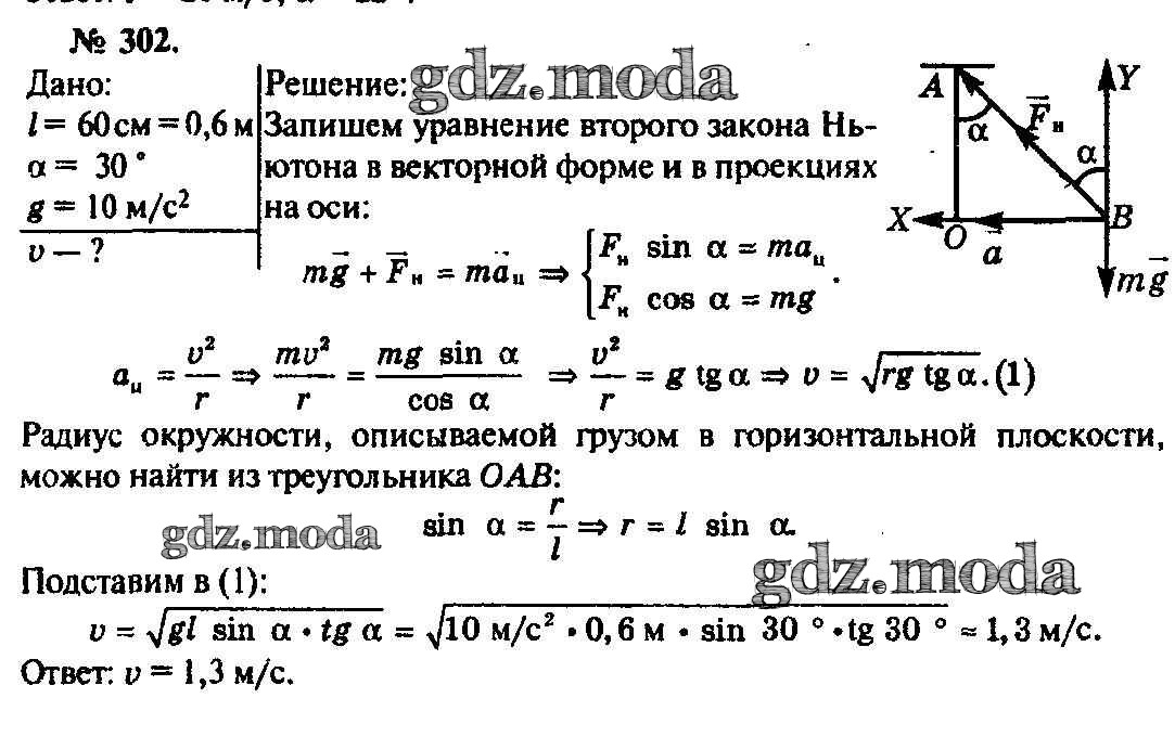 ОТВЕТ на задание № 302 Задачник по Физике 10-11 класс Рымкевич УМК